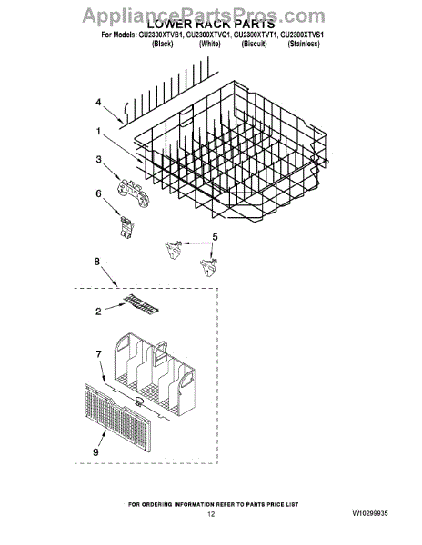 Parts for Whirlpool GU2300XTVS1: 10 - Lower Rack Parts