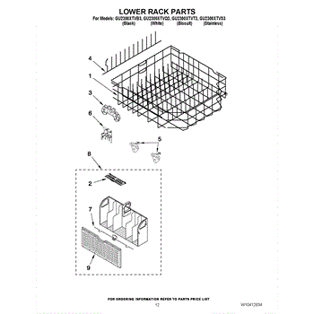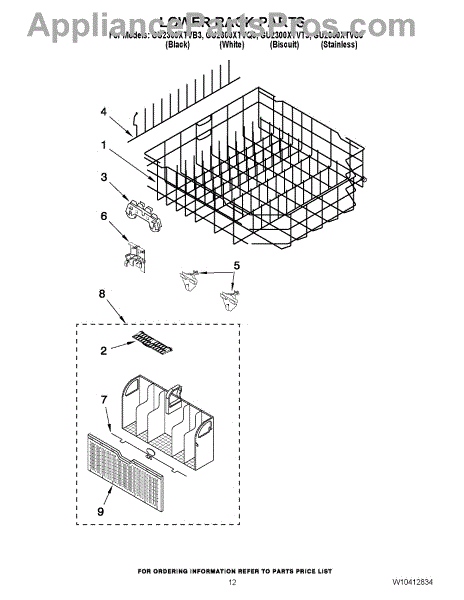 Parts for Whirlpool GU2300XTVT3: 10 - Lower Rack Parts