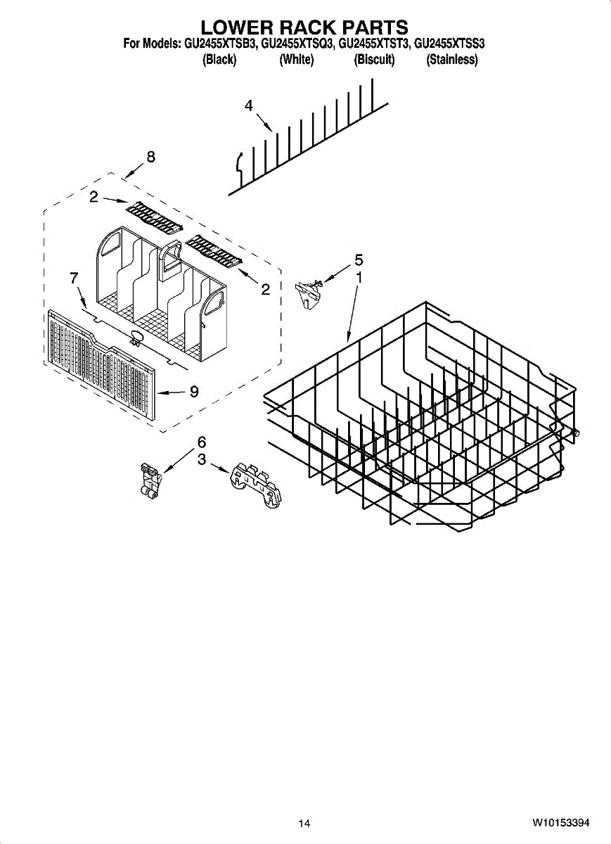Parts for Whirlpool GU2455XTST3: 11 - Lower Rack Parts, Optional Parts (Not Included) Parts