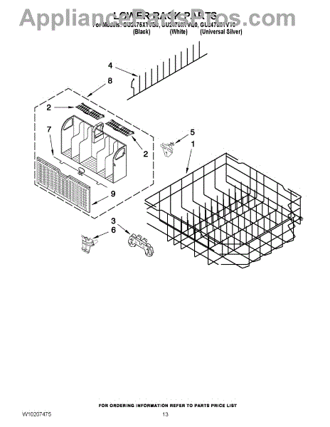 Replaces a rusted, bent, or broken lower dishwasher rack. Holds plates, bowls, and cookware securely during wash cycles. Easy DIY installation.