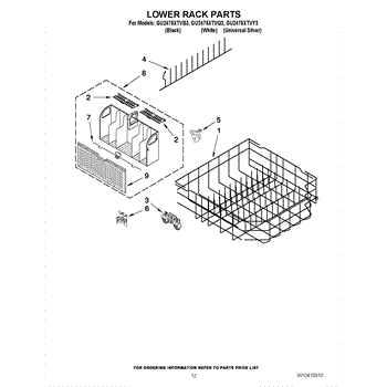 Parts for Whirlpool GU2475XTVY3: 10 - Lower Rack Parts