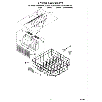 Parts for Whirlpool GU2500XTPB0: 11 - Lower Rack Parts