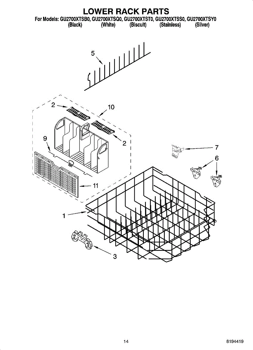 Replaces a rusted, bent, or broken lower dishwasher rack. Holds plates, bowls, and cookware securely during wash cycles. Easy DIY installation.