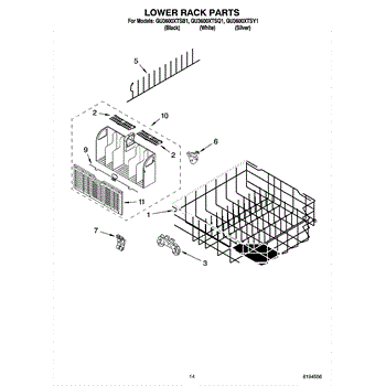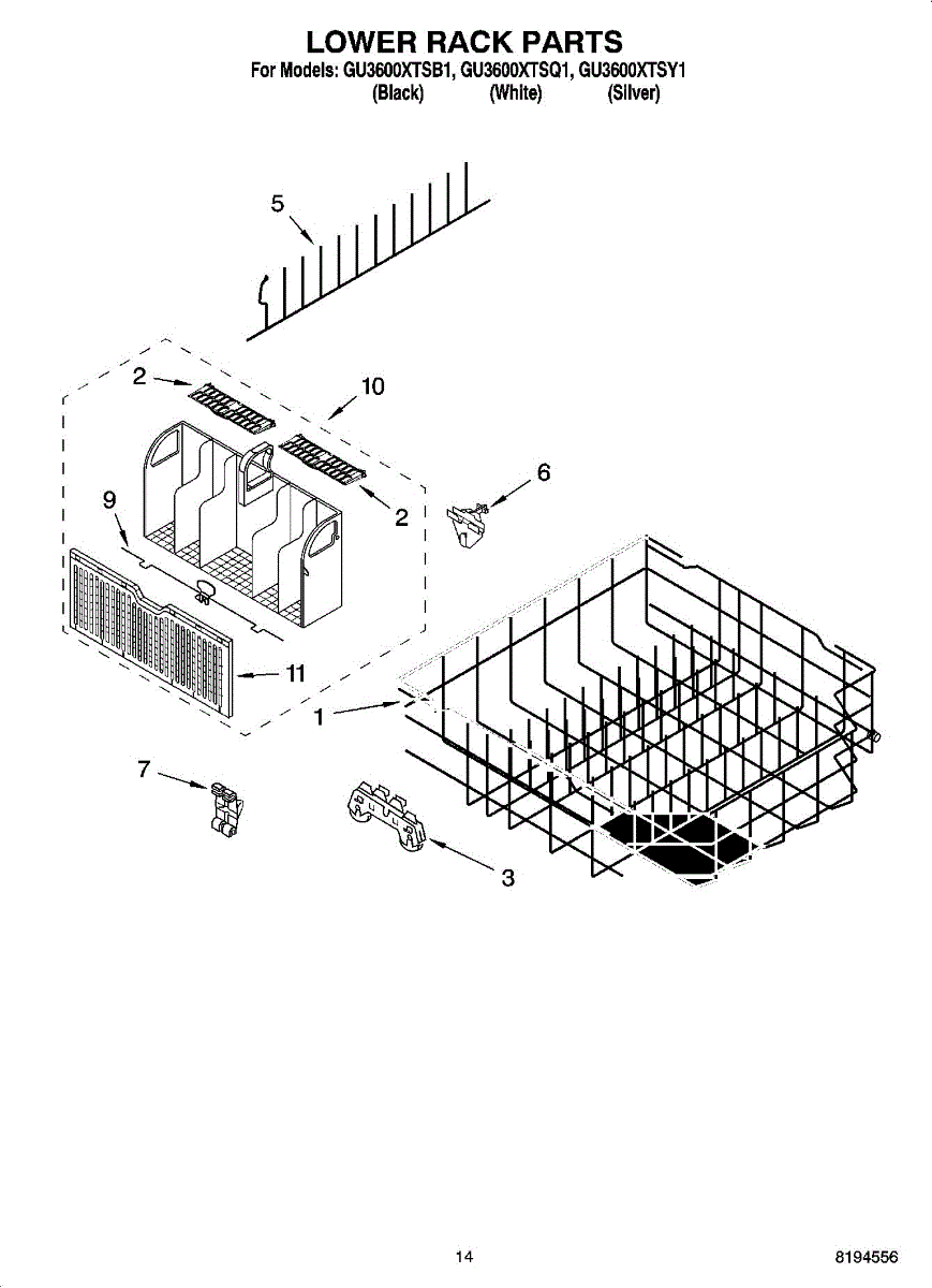 Parts for Whirlpool GU3600XTSB1: 11 - Lower Rack Parts, Optional Parts (Not Included) Parts