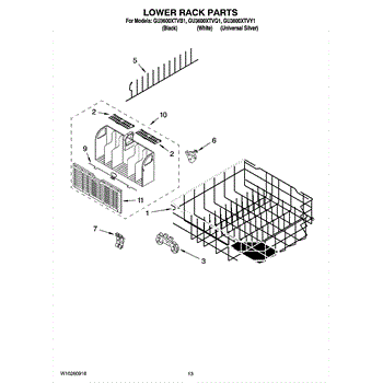 Parts for Whirlpool GU3600XTVQ1: 10 - Lower Rack Parts