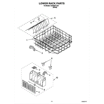 The Lower Dishwasher Rack Assembly is an OEM part for Whirlpool dishwashers. This part holds and organizes dishes, pots, and pans in the lower section of the dishwasher, ensuring they are properly positioned for effective cleaning.