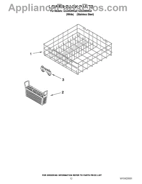 Parts for Whirlpool IUD8000WS4: 10 - Lower Rack Parts