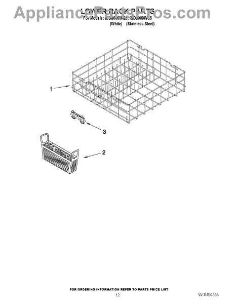 Parts for Whirlpool IUD8000WS5: 10 - Lower Rack Parts