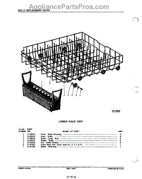 Parts for Kitchenaid KDC17: 16 - Lower Rack Parts