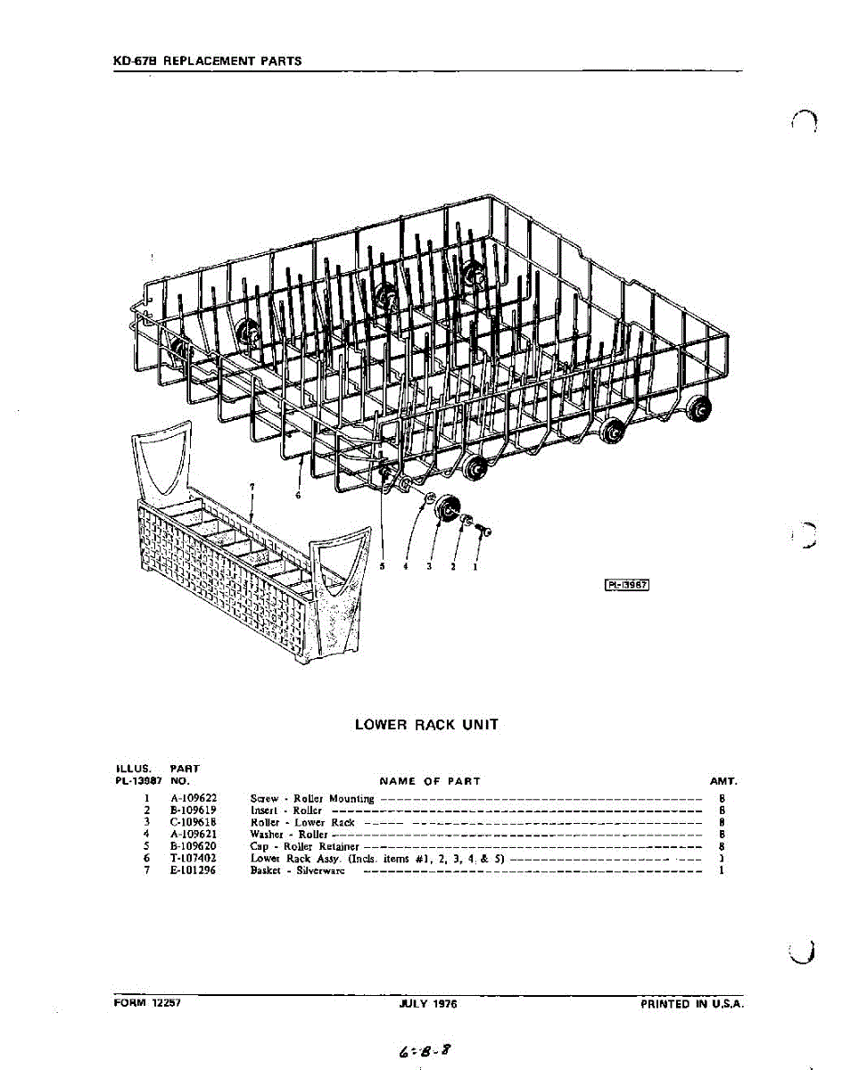 Parts for Kitchenaid KDD67B: 22 - Lower Rack Parts