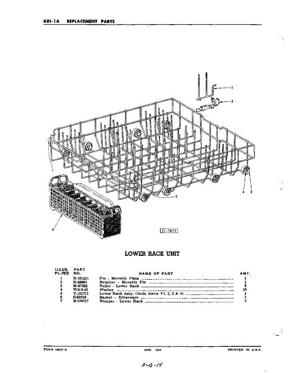 Parts for Kitchenaid KDI16: 19 - Lower Rack Parts