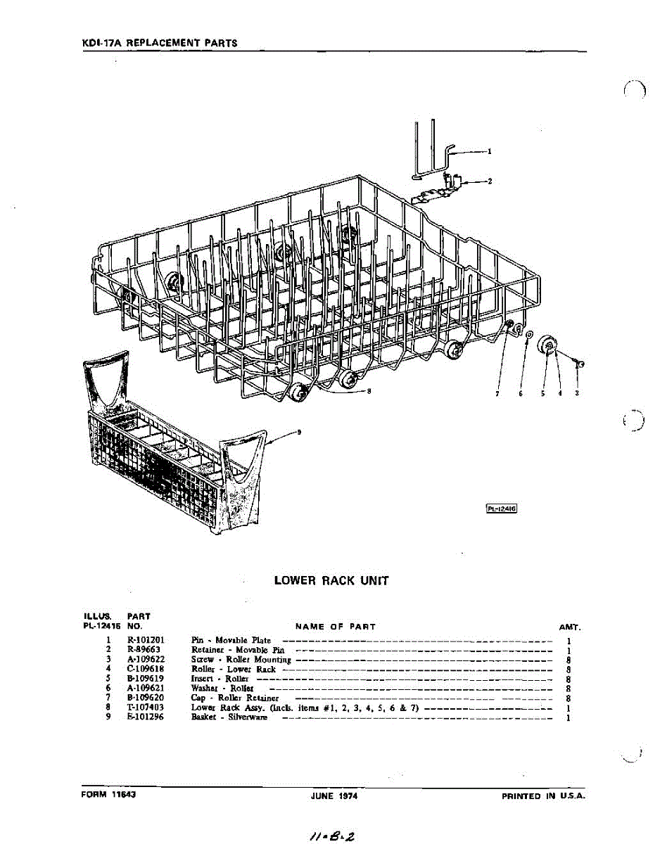 Parts for Kitchenaid KDI17A: 16 - Lower Rack Parts
