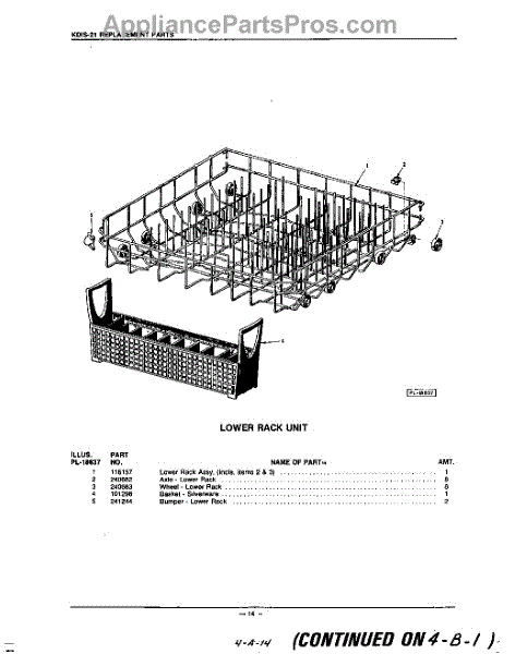 Parts for Kitchenaid KDIS21: 14 - Lower Rack Parts