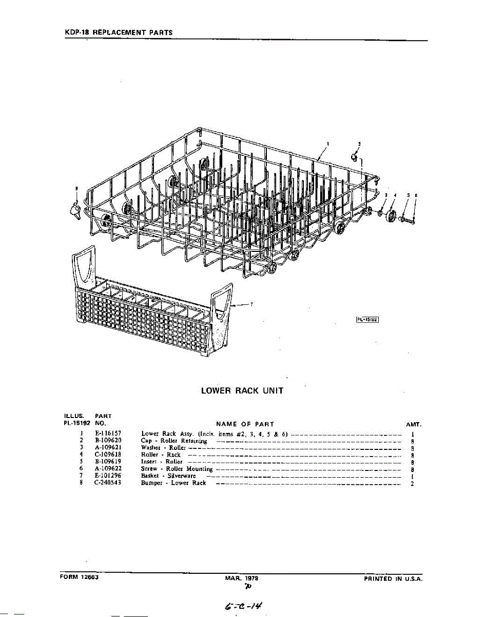 Parts for Kitchenaid KDP18: 20 - Lower Rack Parts