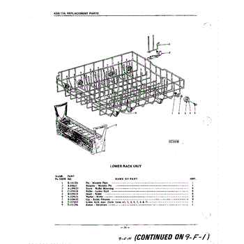 Parts for Kitchenaid KDS17A: 14 - Lower Rack Parts
