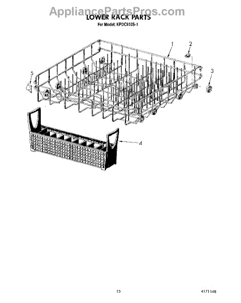Parts for Kitchenaid KPDC610S1: 11 - Lower Rack Parts