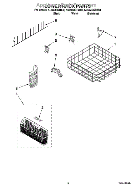 Parts for Kitchenaid KUDA03CTWH0: 11 - Lower Rack Parts, Optional Parts (Not Included) Parts