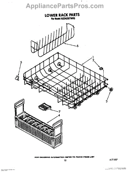 Parts for Kitchenaid KUDA220TWH3: 12 - Lower Rack Parts