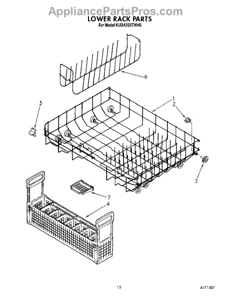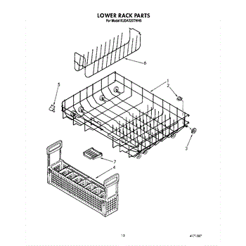 Parts for Kitchenaid KUDA220TWH5: 12 - Lower Rack Parts