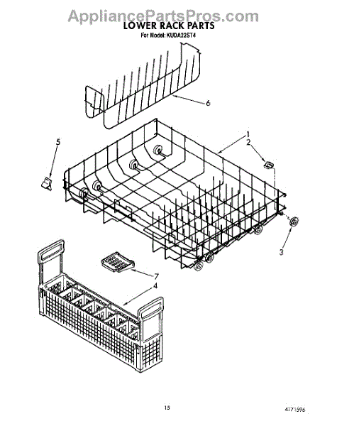 Parts for Kitchenaid KUDA22ST4: 12 - Lower Rack Parts