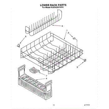 Parts for Kitchenaid KUDA230YWH1: 11 - Lower Rack Parts