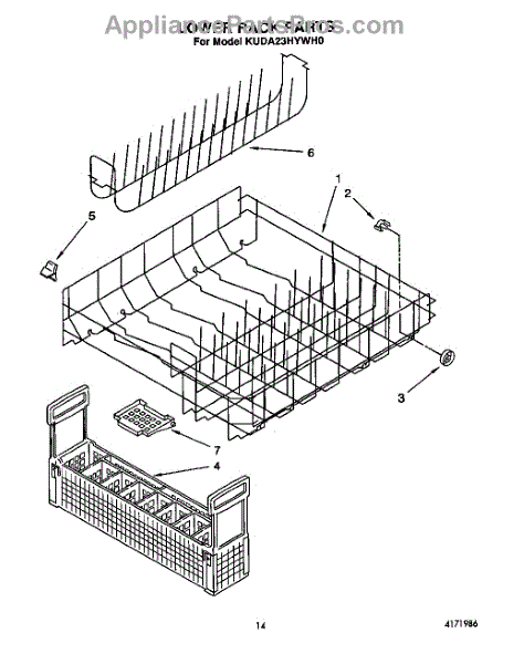 Parts for Kitchenaid KUDA23HYWH0: 11 - Lower Rack Parts