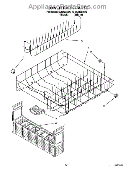 Parts for Kitchenaid KUDA23SB0: 11 - Lower Rack Parts