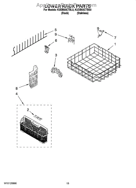 Parts for Kitchenaid KUDB03CTBS0: 11 - Lower Rack Parts, Optional Parts (Not Included) Parts