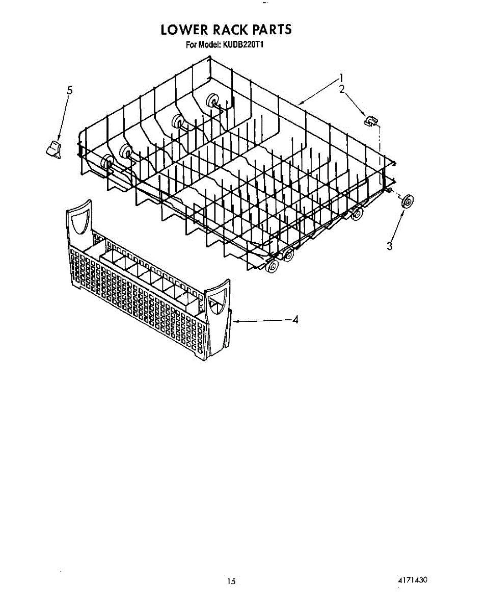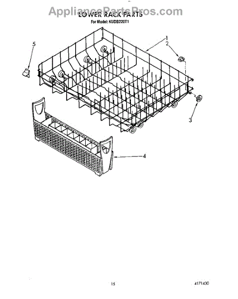 Parts for Kitchenaid KUDB220T1: 12 - Lower Rack Parts