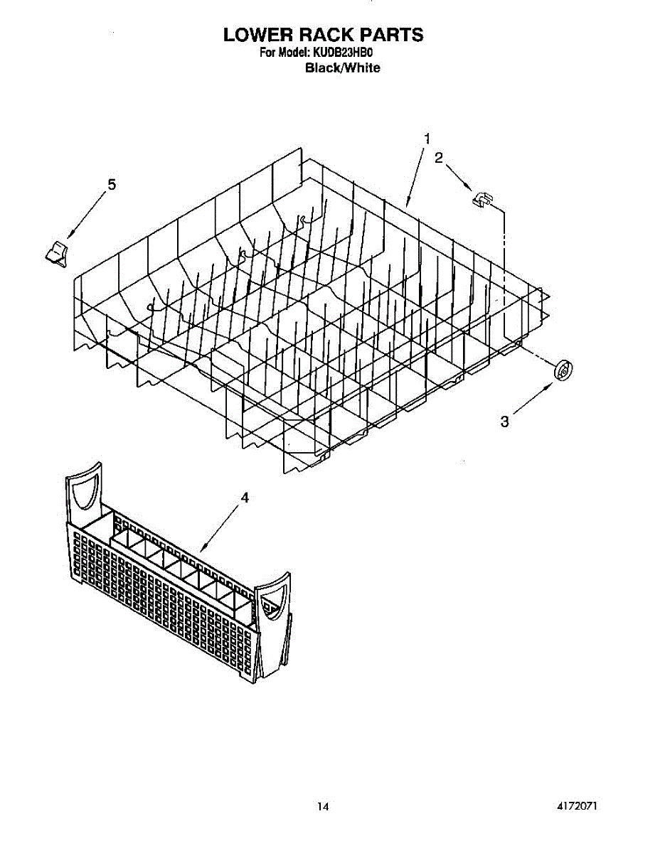 Parts for Kitchenaid KUDB23HB0: 11 - Lower Rack Parts