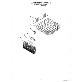 Parts for Kitchenaid KUDC03FVSS0: 10 - Lower Rack Parts