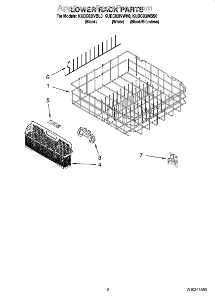Parts for Kitchenaid KUDC03IVBS0: 10 - Lower Rack Parts