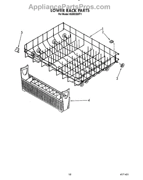 Parts for Kitchenaid KUDC220T1: 12 - Lower Rack Parts