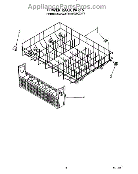 Parts for Kitchenaid KUDC220T4: 12 - Lower Rack Parts