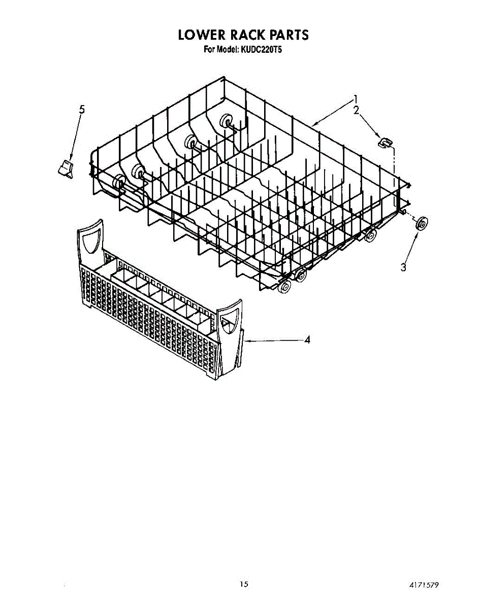This is a dishrack only it no longer includes the rollers and or axles. Color: light gray. Measures about 21 inches wide by 4 inches high by 22 inches deep. For axles order 4162321, for rollers order WP4162322, order 8 of each for complete set.