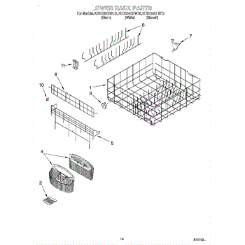 Parts for Kitchenaid KUDC25CHBL0: 11 - Lower Rack Parts