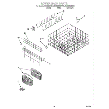 Parts for Kitchenaid KUDC25CHBL1: 11 - Lower Rack Parts