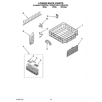 The Lower Dishrack is an OEM replacement part for Whirlpool dishwashers. It is a crucial component that holds and organizes dishes, pots, and pans during the dishwashing cycle, ensuring proper cleaning and preventing damage.