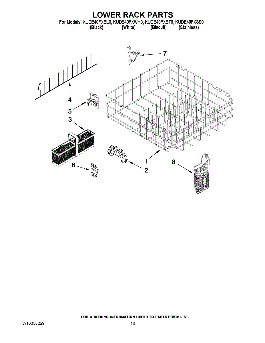 Replacement lower dishrack for dishwashers. Holds dishes, pots, and pans during wash cycles. Replace if cracked, rusted, or tines are broken or missing.
