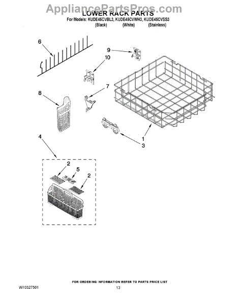 Parts for Kitchenaid KUDE45CVSS3: 10 - Lower Rack Parts