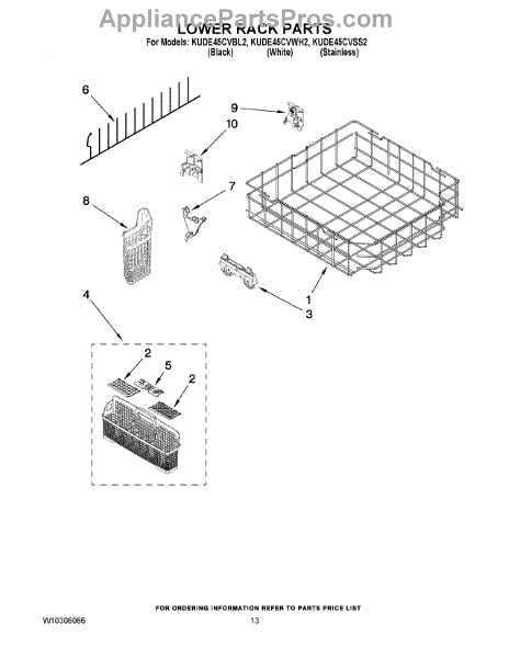 Parts for Kitchenaid KUDE45CVWH2: 10 - Lower Rack Parts