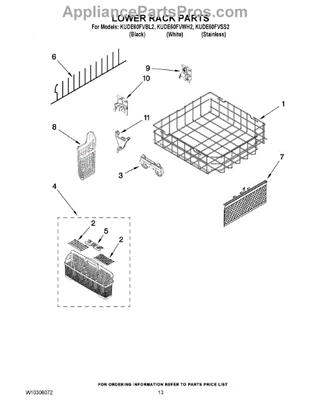 Replacement lower dishrack for dishwashers. Holds dishes, pots, and pans during wash cycles. Replace if cracked, rusted, or tines are broken or missing.