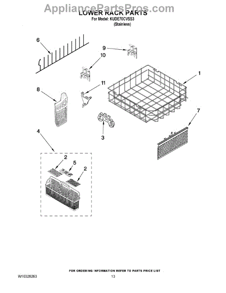 Parts for Kitchenaid KUDE70CVSS3: 10 - Lower Rack Parts