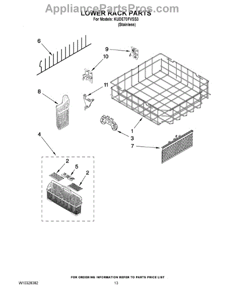 Parts for Kitchenaid KUDE70FVSS3: 10 - Lower Rack Parts