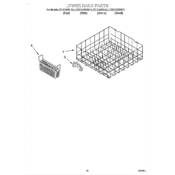 Note: There are four wheel assemblies includes with this rack. The flexible tine rows are not included. This is a lower dishrack assembly for a dishwasher. This part holds the dishes during the washing and drying cycles. Note that this is only the lower dishrack assembly and the upper dishrack assembly is sold separately. Over time, the lower dishrack assembly may begin to rust or the coating may wear off. It is also possible that sections of the part could break due to degradation over time. If this happens, the entire lower dishrack assembly will need to be replaced. The lower dishrack assembly is compatible with dishwashers that are manufactured by the Kenmore, KitchenAid, and Whirlpool brands. It comes straight from the manufacturer and is sold individually. It's a genuine, high-quality, and durable OEM part.