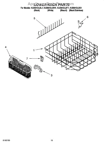 Parts for Kitchenaid KUDI01DLBL1: 11 - Lower Rack Parts