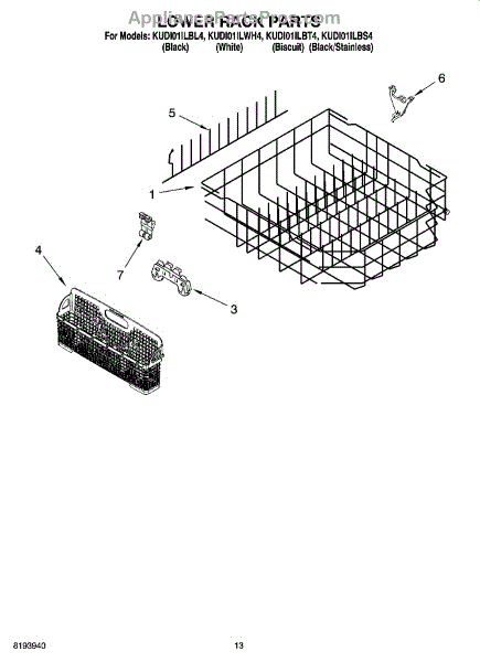 Parts for Kitchenaid KUDI01ILBL4: 11 - Lower Rack Parts, Optional Parts (Not Included) Parts