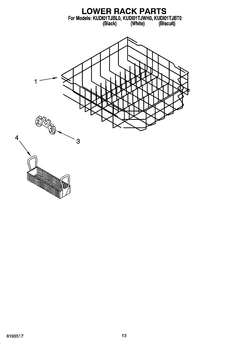 Parts for Kitchenaid KUDI01TJBL0: 11 - Lower Rack Parts