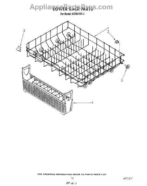 Parts for Kitchenaid KUDI21DS3: 12 - Lower Rack Parts
