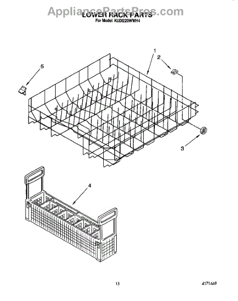 Parts for Kitchenaid KUDI220WWH4: 12 - Lower Rack Parts